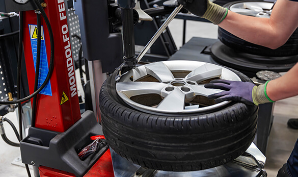 Vi tar varsamt bort de gamla däcken och byter ventiler vid behov.